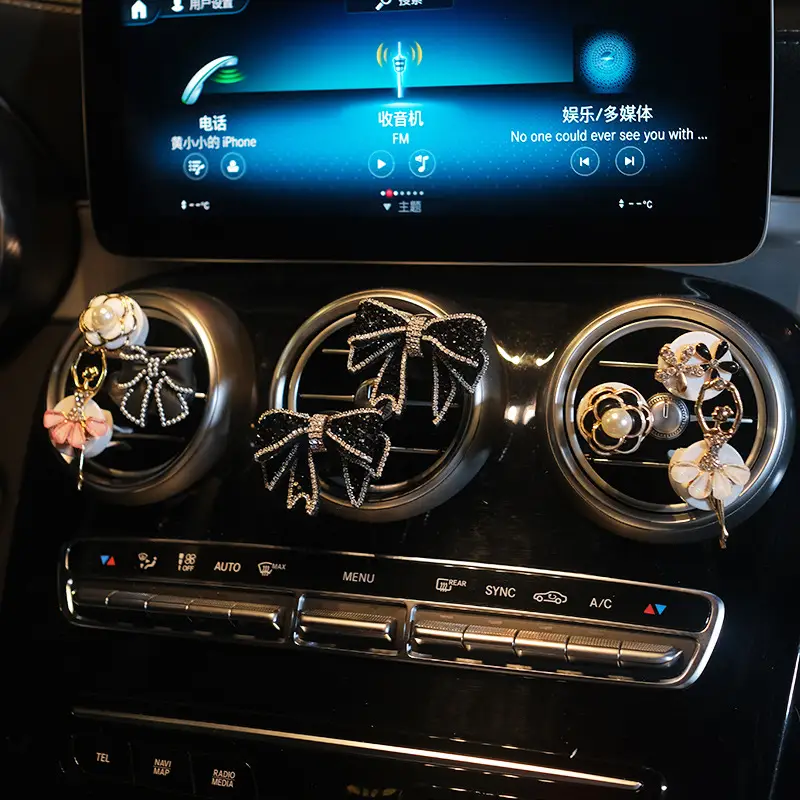 Car Air Vent Clip Crystal Perfume Diffuser Set with Bow and Flower Designs