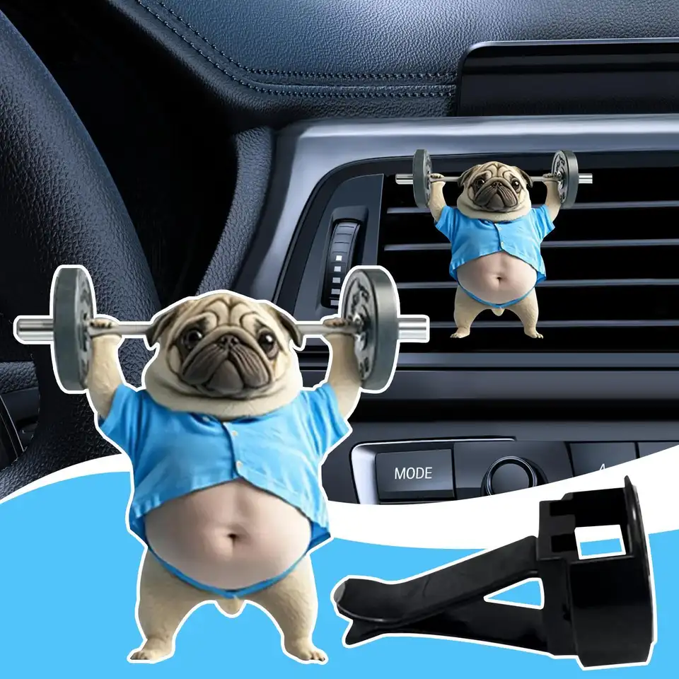 Pug Lifting Weights Car Vent Air Freshener for Aromatherapy