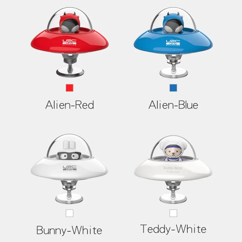 Rotating UFO Car Air Freshener with Cute Figures – Inertia Spinner Scents