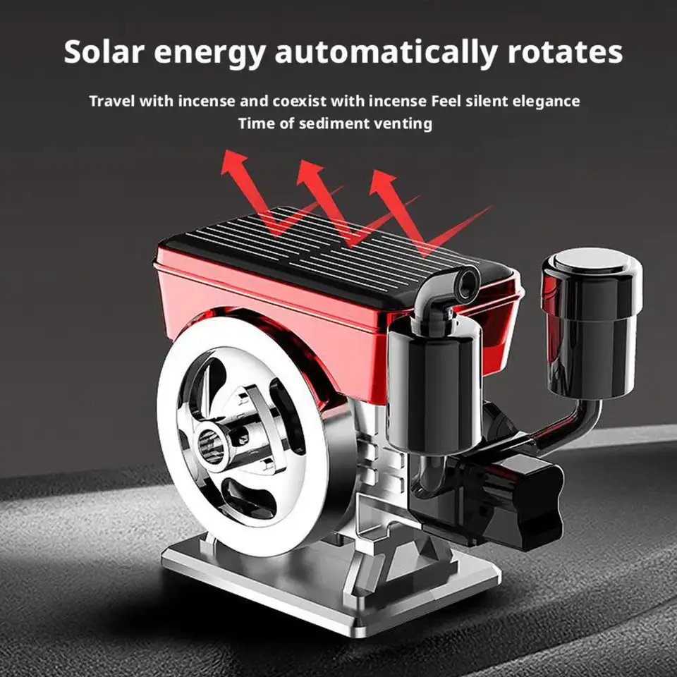 Solar-Powered Rotating Car Incense Holder with Engine Design