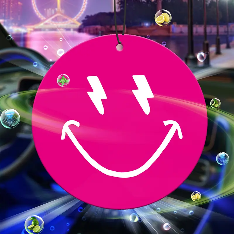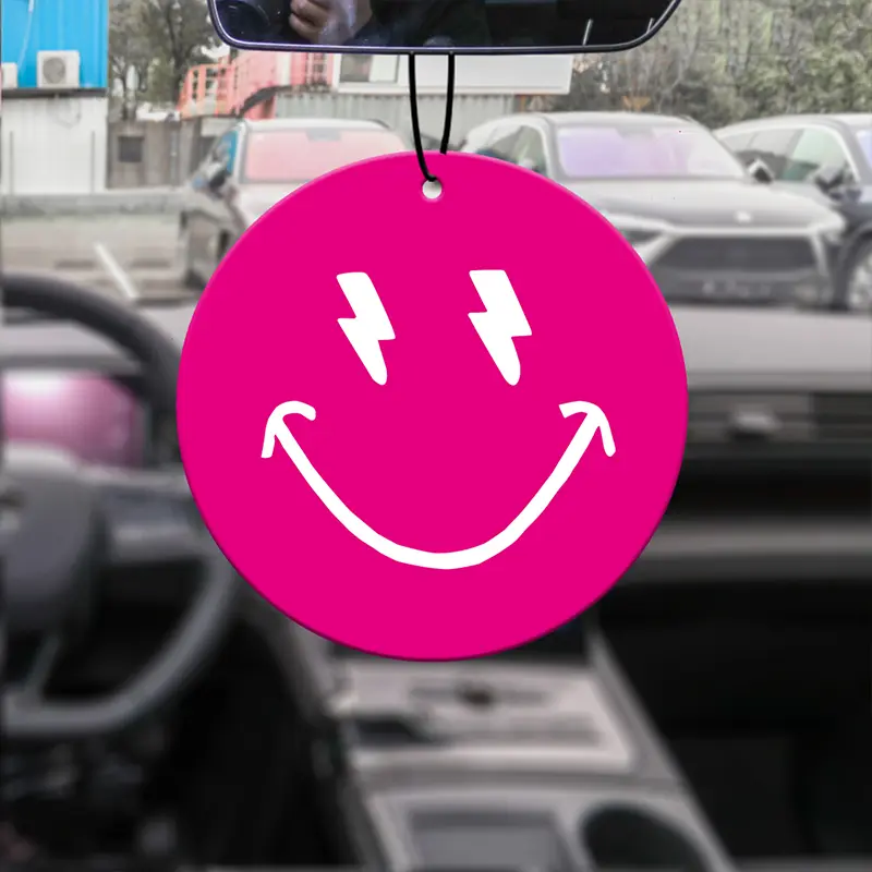 Smiley Face Car Air Freshener with Lightning Eyes Design