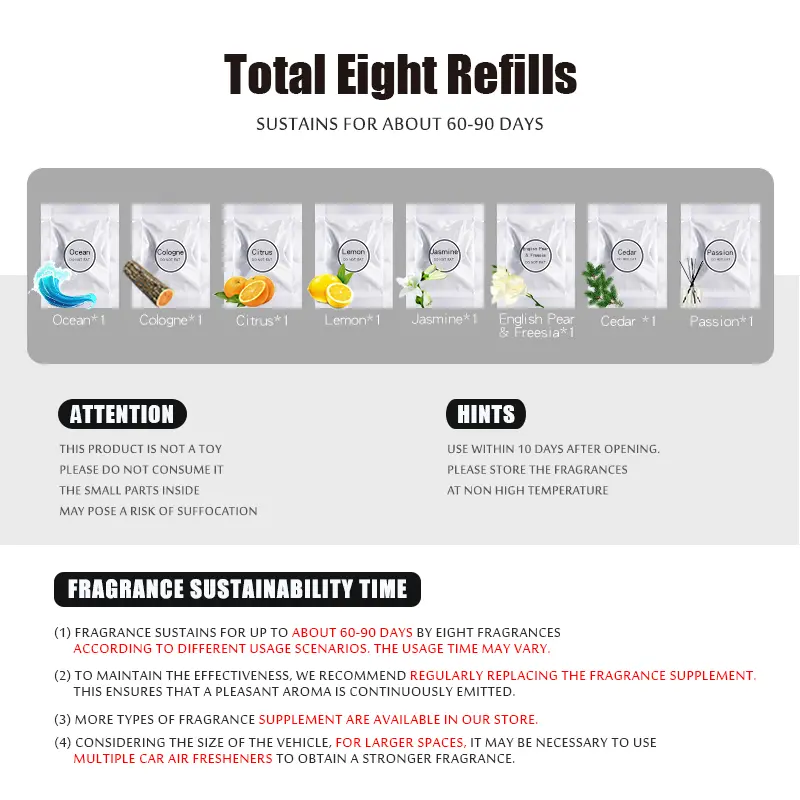 Fill your journey with fragrance, Car Aromatherapy, and experience a new charm of driving! Pure scents, stress-relief, and a fresh