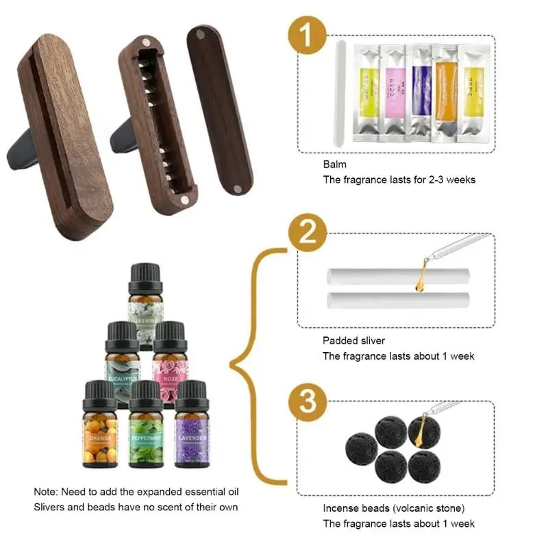 Wooden Car Air Vent Freshener Clips Set – Natural Fragrance Dispenser